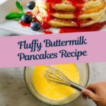 Fluffy and tender buttermilk pancakes made from scratch, featuring a light almond extract flavor. Perfect for a delightful breakfast or brunch, these pancakes are cooked on a griddle to golden perfection and can be served with confectioners’ sugar, maple syrup, or homemade strawberry compote for added sweetness.