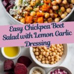 This vibrant Chickpea, Beet & Feta Salad combines earthy roasted beets, creamy feta cheese, and protein-rich chickpeas, tossed in a zesty lemon-garlic vinaigrette. Perfect for a quick, nutritious Mediterranean-inspired meal or side dish that is gluten-free, vegetarian, and packed with fiber and flavor.