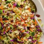 Once your veggies, nuts, seeds, and raisins are ready, add them all together in a spacious bowl. This is where the magic starts coming together as you prepare to dress this vibrant assortment with your flavorful vinaigrette.