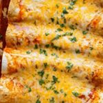 Cover the dish with aluminum foil and bake for 15 minutes to heat through and melt the cheese underneath. Then uncover and return to the oven for an additional 10 minutes, allowing the cheese to bubble and brown slightly. Once finished, your enchiladas will be piping hot, gooey, and absolutely delicious.