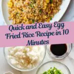 This easy 10-minute Egg Fried Rice recipe requires only 6 simple ingredients and delivers a flavorful, comforting dish perfect for a quick meal. Made with day-old jasmine rice, fresh green onions, soy sauce, sesame oil, and scrambled eggs, it’s a classic recipe that’s quick, tasty, and versatile.