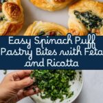 For parties or brunch gatherings, serve the Cheesy Spinach Puffs with Feta and Sun-Dried Tomatoes Recipe on a rustic wooden board alongside bowls of olives and nuts. You can also stack them in a tiered display or place them in colorful mini baking cups for a pop of color and charm.