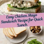 This quick and easy Chicken Mayo Sandwich recipe is perfect for a light meal or snack using leftover cooked chicken. It combines shredded chicken with creamy mayonnaise, dijon mustard, and fresh chives, layered between slices of buttered bread with optional fresh greens for added crunch and flavor. Ready in just 5 minutes, it’s a delicious and satisfying option for a simple homemade sandwich.