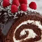 This decadent Chocolate Cake Roll combines the rich flavors of devil’s food cake with a luscious buttercream filling and a smooth coffee-infused chocolate ganache. Rolled into a beautiful spiral and topped with fresh raspberries and white chocolate shreds, this elegant dessert is perfect for special occasions or an indulgent treat.