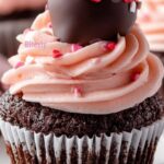 Indulge in these delightful Chocolate Covered Strawberry Cupcakes, featuring rich chocolate cupcakes topped with a luscious strawberry buttercream frosting and crowned with a beautifully decorated chocolate-covered strawberry. Perfect for Valentine’s Day or any special occasion, this recipe blends the classic flavors of chocolate and fresh strawberries with a festive touch of sprinkle decorations.