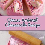 This delightful Circus Animal Cheesecake combines a colorful twist on the classic cheesecake with a crunchy circus animal cookie crust and festive sprinkles on top. The creamy pink cheesecake filling infused with vanilla and a hint of fun pink food coloring makes it a perfect dessert for parties and celebrations.