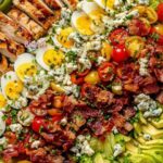 Top your dressed romaine and colorful veggies with the chopped cooked beef strips and finally the sliced chicken. Drizzle with additional vinaigrette if desired for extra flavor, and your Cobb Salad Recipe is ready to delight. This is a salad that feels like a feast and wow’s guests every time.