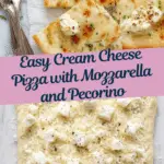 This Cream Cheese Pizza features a soft and airy no-knead dough topped with fresh mozzarella, pecorino, and dollops of smooth cream cheese. Baked on a pizza stone until golden and bubbly, it’s finished with a drizzle of extra virgin olive oil, fresh chives, and chili flakes for a deliciously creamy and flavorful twist on traditional pizza.