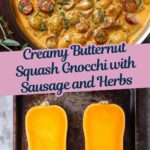 This creamy butternut squash gnocchi recipe combines tender potato gnocchi with savory Italian sausage, fragrant thyme, and sage, all enveloped in a rich, velvety butternut squash and cream sauce. Perfect for a comforting and flavorful meal ready in just 40 minutes.