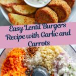 These easy 6-ingredient lentil burgers are a healthy, delicious, and protein-packed vegetarian alternative to traditional beef burgers, perfect for a quick meal. Made from red lentils, garlic, shallots, carrots, tomato paste, and fresh cilantro, they can be baked or pan-fried until crispy and served with your favorite burger toppings or sides.