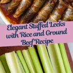 For a festive occasion, arrange the stuffed leeks in a large circular pattern on a serving platter and garnish the center with pomegranate seeds and edible flowers. This Elegant Stuffed Leeks with Rice and Beef Recipe also shines when plated individually with a drizzle of sauce artistically swirled around. Presentation like this makes it perfect for impressing guests or enjoying a special family dinner.