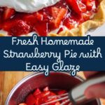 This Fresh Strawberry Pie features a homemade pie crust filled with a luscious strawberry glaze and fresh strawberries, topped with whipped cream. The glaze is just thick enough to hold the strawberries together while maintaining a beautifully fresh and juicy texture. Adjust the sugar based on the sweetness of your strawberries for a perfectly balanced dessert.