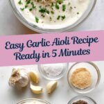 This Garlic Aioli recipe is a creamy, flavorful sauce made with mayonnaise, fresh garlic, lemon juice, and a blend of seasonings. It comes together quickly in just 5 minutes and is perfect as a dip, spread, or accompaniment to a variety of dishes. The aioli’s bright and garlicky profile makes it a versatile condiment that elevates sandwiches, fries, grilled vegetables, and more.