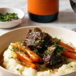 This Garlic Braised Short Ribs recipe offers tender, flavorful beef ribs cooked slowly to perfection either in a Dutch oven or an Instant Pot. Rich with garlic, herbs, and hearty vegetables, the ribs become fall-off-the-bone tender, perfect served over creamy mashed potatoes for a comforting meal.