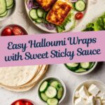 These Halloumi Wraps with Sticky Sauce are a quick and flavorful meal perfect for a light lunch or dinner. Crispy fried halloumi coated in a sweet and tangy sauce, combined with fresh veggies and creamy hummus, all wrapped in soft tortillas. Ready in just 15 minutes and serving 4, these wraps offer a delightful combination of textures and flavors for a satisfying vegetarian option.