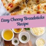 These Homemade Cheesy Breadsticks are a delightful, cheesy treat featuring a crispy crust topped with a blend of mozzarella and Parmesan cheeses, garlic butter, and Italian seasoning. Perfect as an appetizer or snack, they bake up golden and bubbly in just 10 minutes.
