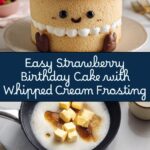 Jellycat Birthday Cake is a charming and visually delightful layered vanilla sponge cake adorned with whipped cream, strawberry jam, fresh strawberries, and whimsical chocolate decorations. This recipe offers a light, fluffy texture combined with a creamy and fruity filling, perfect for celebrating special occasions with a fun and festive touch.