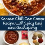 This Korean Chile Con Carne recipe is a flavorful fusion dish that combines the rich, tender beef of a classic chile con carne with spicy Korean influences like gochujang and gochugaru. Slow-simmered for hours, this hearty stew features a balance of smoky chipotle, savory spices, and the deep umami of dark beer and fire-roasted tomatoes, resulting in a robust, warming meal perfect for family dinners.
