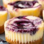 If you want to impress guests, consider placing your mini cheesecakes on a tiered dessert stand for an elegant display. You can also use pretty serving plates and scatter edible flowers or a dusting of powdered sugar around the edges. For a fun twist, serve them in clear mini mason jars or glass cups to showcase the gorgeous blueberry swirls and layers of crust and filling.