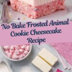 This No Bake Frosted Animal Cookie Cheesecake is a fun and colorful dessert featuring a crunchy frosted animal cookie crust and a creamy pink cheesecake filling. It’s perfect for any occasion that calls for an easy, no-bake treat with a nostalgic twist, topped with rainbow sprinkles and extra cookies for festive flair.