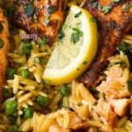 This one-pan lemon orzo and salmon recipe combines tender, flaky salmon fillets with creamy, lemon-infused orzo cooked alongside nutrient-rich kale and sweet peas. Perfect for a quick, wholesome dinner, this dish uses a skillet for searing and simmering, delivering bright, fresh flavors with minimal cleanup.