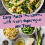A vibrant and fresh Pasta Primavera featuring tender asparagus, sweet peas, and crisp sugar snap peas tossed in a light lemon garlic butter sauce, finished with grated parmesan and fresh parsley. This quick and easy dish is perfect for a healthy, flavorful meal in just 15 minutes.