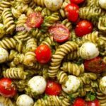 A vibrant and flavorful Pesto Pasta Salad combining tender rotini pasta with rich homemade pesto, juicy cherry tomatoes, creamy baby bocconcini mozzarella, and a hint of sharp red onion. Perfect as a light lunch or a refreshing side dish, this salad is easy to prepare and can be enjoyed immediately or chilled for later.