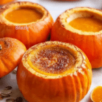 This Pumpkin Spice Crème Brûlée is a delightful autumnal twist on the classic French dessert, combining creamy custard infused with pumpkin puree and warm spices like cinnamon, ginger, nutmeg, and cloves. Baked inside small hollowed pumpkins and topped with a crisp, caramelized sugar crust, it offers a visually stunning and flavorful treat that’s perfect for fall gatherings or special occasions.