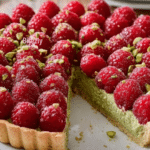 This Raspberry Pistachio Frangipane Tart is a delightful blend of buttery pâte sablée crust, creamy pistachio frangipane filling, and fresh raspberries. The crunchy pistachio topping adds texture and a nutty finish, creating a sophisticated dessert perfect for any occasion.