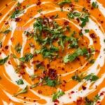 Pair this soup with crusty bread or warm garlic naan to soak up every drop of the delicious liquid. A light mixed greens salad or roasted Brussels sprouts complement the natural sweetness of the soup nicely, rounding out your meal with contrasting textures.