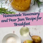 Creating this Rosemary and Pear Jam Recipe is wonderfully straightforward because each ingredient plays an essential role. The pears bring natural sweetness and body, the sugar intensifies flavor and helps with preservation, the lemon juice brightens the taste while aiding set, and rosemary adds that enchanting herbal note that sets this jam apart.