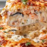 This Seafood Lasagna is a delightful blend of creamy béchamel sauce, ricotta cheese, and a flavorful seafood mix layered between fresh lasagna noodles. Baked to perfection with mozzarella and parmesan cheese topping, it’s a rich and satisfying dish perfect for a seafood lover’s dinner.