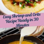 Classic Southern Shrimp and Grits recipe featuring creamy cheddar grits topped with savory bacon and perfectly cooked wild shrimp, finished with scallions, garlic, lemon juice, and an optional kick of Tabasco sauce. A comforting and flavorful dish ready in just 30 minutes, perfect for breakfast, brunch, or dinner.