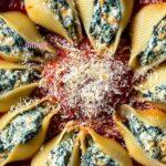 This Spinach and Ricotta Stuffed Shells recipe features jumbo pasta shells filled with a creamy mixture of ricotta, mozzarella, Parmesan, and sautéed spinach, baked to perfection in marinara sauce. Perfect for a comforting and crowd-pleasing Italian-inspired meal, it balances rich cheese flavors with fresh spinach and garlic for a wholesome dish.