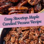 These Stovetop Maple Candied Pecans are a deliciously sweet and crunchy treat made with pure maple syrup, vanilla, cinnamon, and a touch of sea salt. Perfect as a snack, salad topper, or holiday gift, these candied nuts are cooked right on the stove in under 20 minutes for a quick and flavorful indulgence.