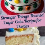 This Stranger Things Cake recipe is a show-stopping layered dessert inspired by the hit TV series, featuring vibrant red, white, and chocolate layers. The cake is rich and moist with a luscious homemade frosting, decorated with black icing to mimic the show’s iconic alphabet wall lights and topped with colorful Peanut M&M’s and mini Eggo waffles for a nostalgic touch. Perfect for fans and themed parties, this cake combines classic flavors with creative presentation.