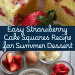 Delicious and moist Strawberry Cake Squares featuring a tender cake base layered with sweet cream cheese and fresh strawberries, baked to perfection. Perfect as a dessert or a sweet snack, these bars offer a delightful combination of creamy and fruity flavors.