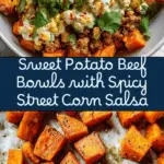 This Street Corn Sweet Potato Beef Bowl is a vibrant and flavorful dish combining roasted sweet potatoes, seasoned ground beef, and a creamy street corn salsa. Inspired by classic Mexican street corn, this recipe balances savory, spicy, and sweet flavors for a wholesome, satisfying meal perfect for a quick weeknight dinner.