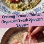 A vibrant and comforting Lemon Chicken Orzo recipe featuring crispy skin-on boneless chicken thighs served over buttery, lemon-infused orzo with fresh spinach, creamy Boursin cheese, and Parmesan. This one-pan stovetop dish balances tangy citrus notes and fresh oregano for a deliciously satisfying meal that’s quick and easy to prepare in about 35 minutes.
