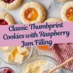 These classic Thumbprint Cookies feature a tender buttery base combined with almond and all-purpose flours, filled with sweet raspberry or apricot jam. Perfect for holiday treats or anytime you want a delicate, fruity cookie with a soft texture and a beautiful presentation.