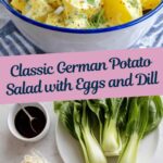 Enjoy a classic Northern German potato salad featuring waxy potatoes, hard-boiled eggs, fresh dill, and pickled gherkins. This creamy salad is dressed with a tangy mixture of vegetable broth, mustard, vinegar, mayonnaise, and yogurt, offering a perfect balance of flavors and textures. Ideal as a side dish or light meal, it requires a resting period for flavors to meld beautifully.