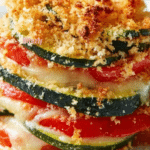 This Zucchini Tomato Casserole with Crumb Topping is a savory baked dish featuring layers of thinly sliced zucchini and tomatoes topped with a flavorful mix of mozzarella, Parmesan cheese, garlic, and herbs, finished with a buttery breadcrumb crust. Perfect as a comforting vegetarian side or main, it offers a delicious blend of tender vegetables and a crunchy topping.